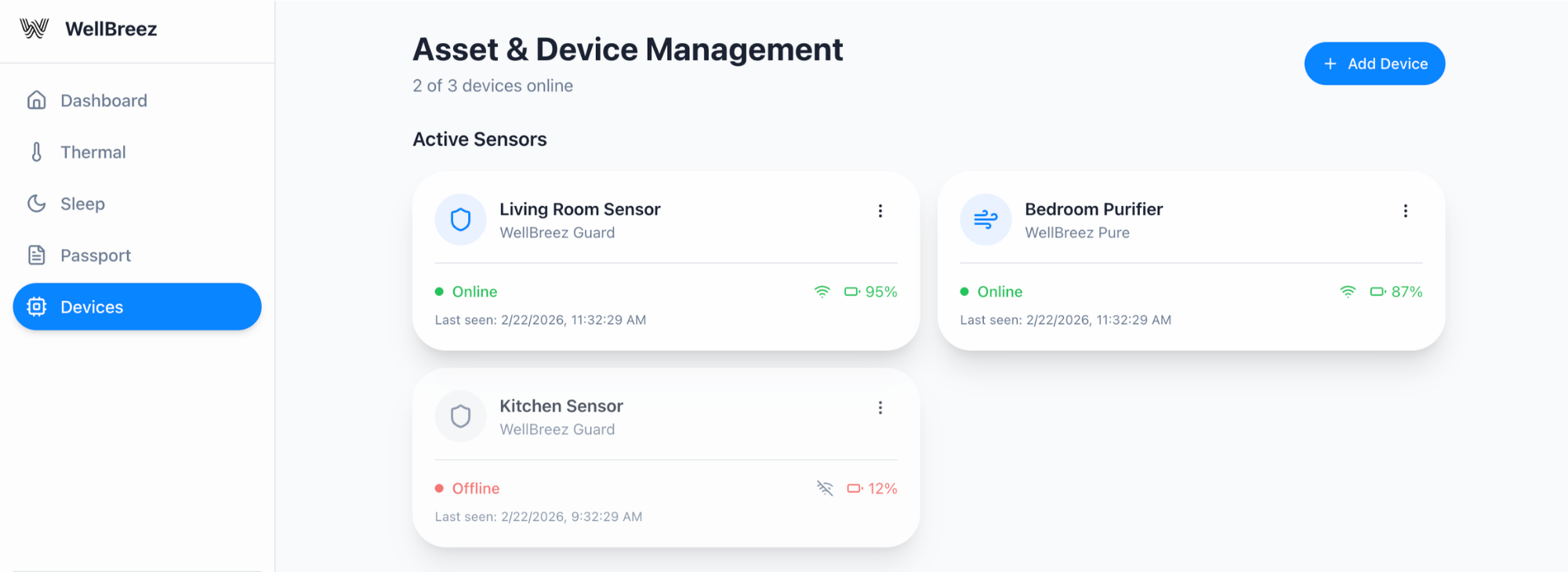 The WellBreez system consists of a small indoor device and a companion app.