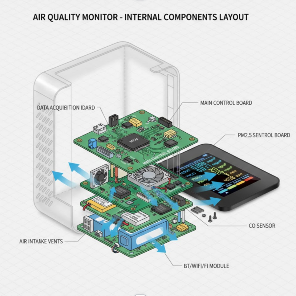 The device monitors humidity, temperature, and air behavior in each room. The app turns that data into clear ventilation instructions, telling you exactly when and how long to open a window.